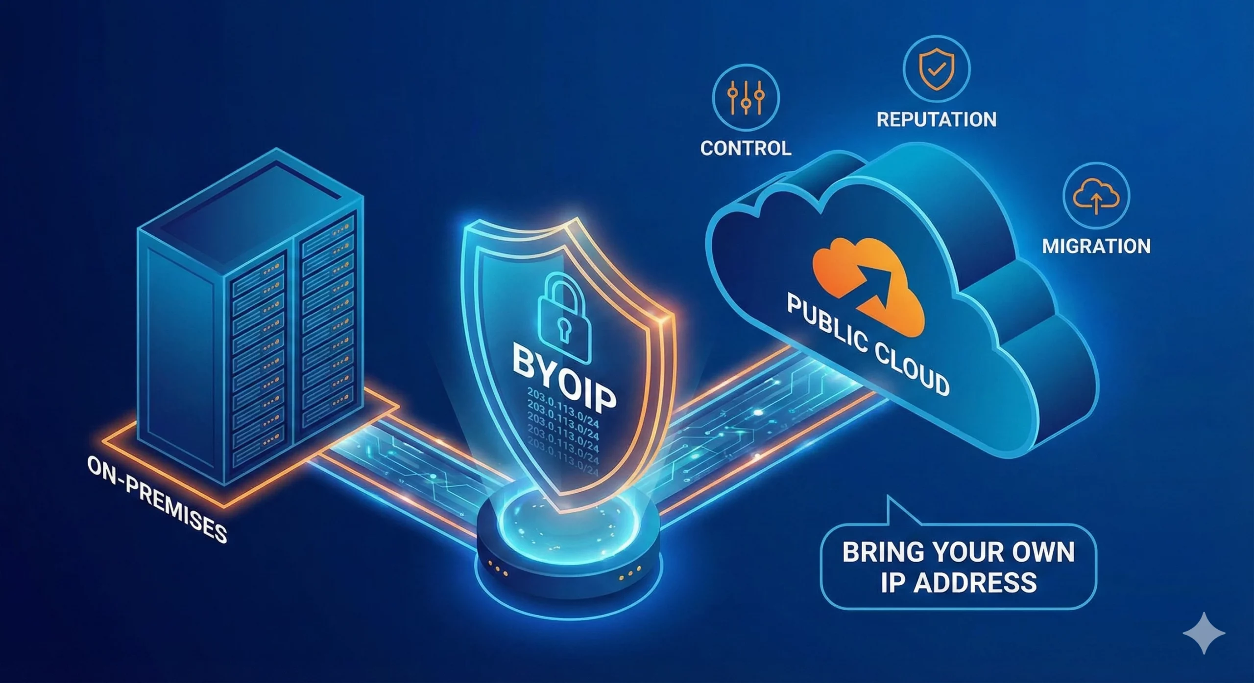 Bring Your Own IP (BYOIP) is a concept in cloud computing and networking that allows businesses to bring and use their own Internet Protocol (IP) address ranges when migrating to cloud service providers (CSPs) or other networking infrastructures. This approach enables organizations to maintain their existing IP addresses instead of