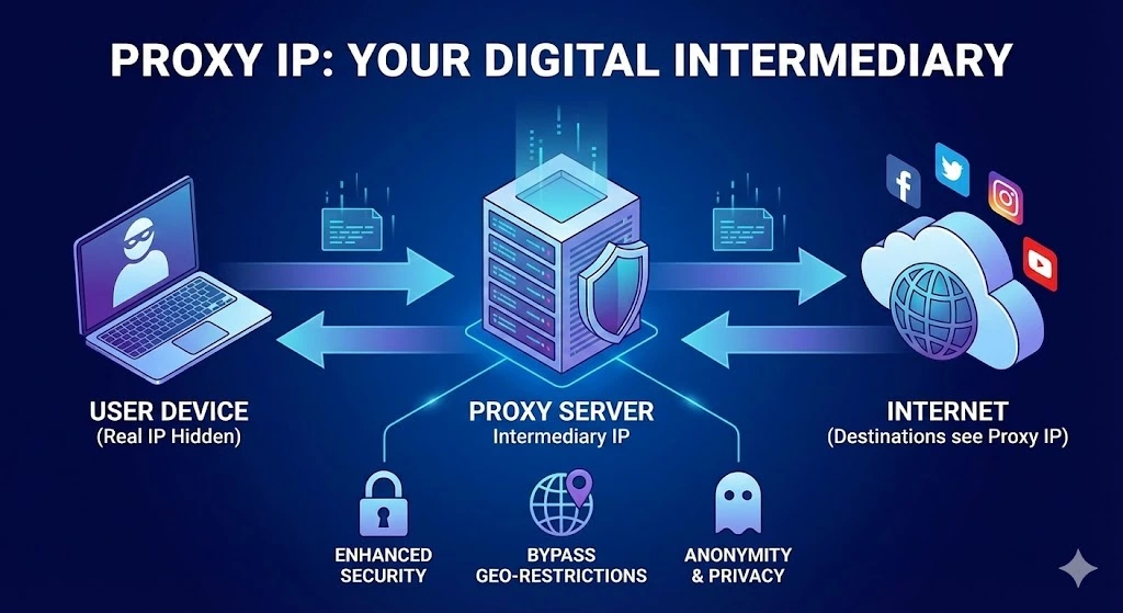 A proxy IP is an intermediary IP address used to mask or relay your original IP address when accessing the Internet. It acts as a gateway between the user and the web. When a request is made to access a website, the proxy server (which uses the proxy IP) forwards that request, hiding the user’s real IP address from the website. This allows for increased privacy and anonymity whenRead more