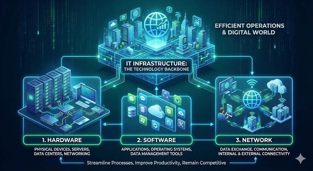 IT infrastructure refers to the collection of hardware, software, networks, and services required for an organization to operate efficiently in the digital world. Essentially, a company’s technology backbone supports all operations, allowing businesses to streamline processes, improve productivity, and remain competitive in a fast-evolving market.
