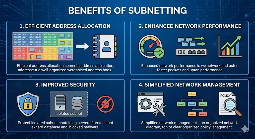By reducing the size of broadcast domains and segmenting traffic into smaller subnets, subnetting helps minimize network congestion and improve overall network performance. This allows for faster data transmission and better bandwidth utilization.