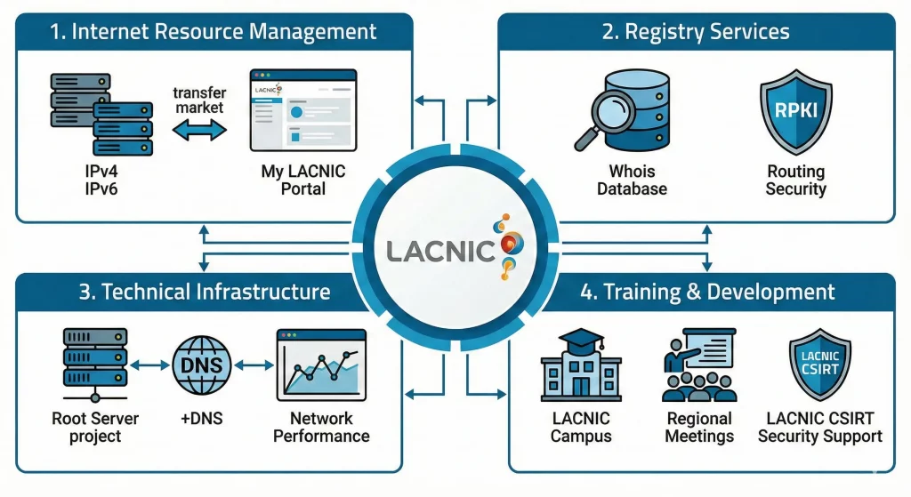 - Representation in Global Internet Governance Forums: LACNIC advocates for regional interests on the global stage.
